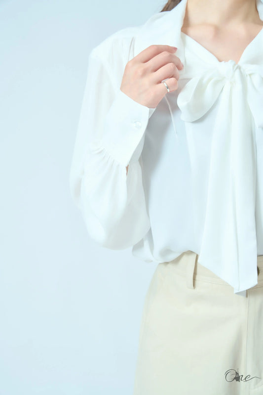 ミニマル上品なシャツ【シルクリボンブラウス】