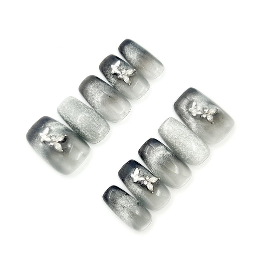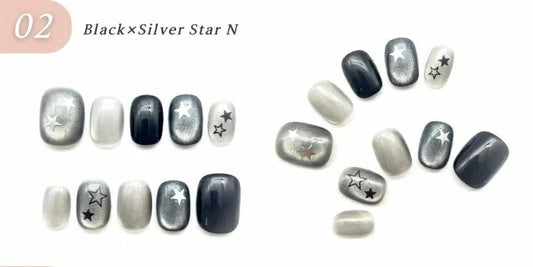 【NEW】カジュアルネイルチップ 【クリアブラック×シルバーマグネットネイル】