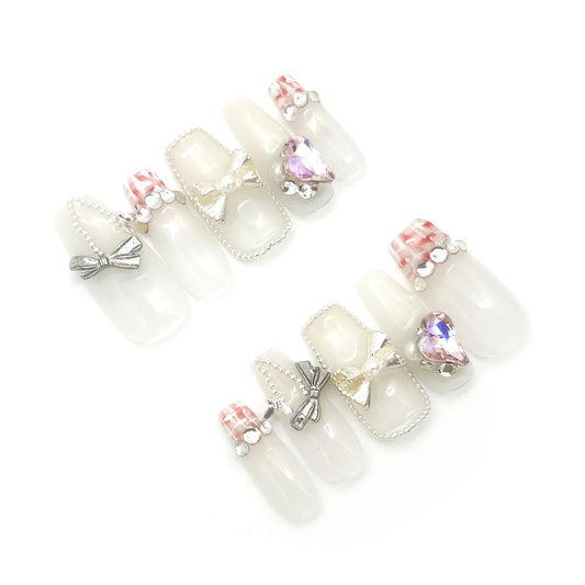 【NEW】ガーリーネイルチップ 【クリアホワイトのプリンセスネイル】