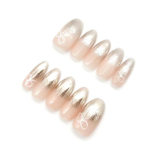 【NEW】カジュアルネイルチップ 【落書きリボンのシルバーミラーネイル】