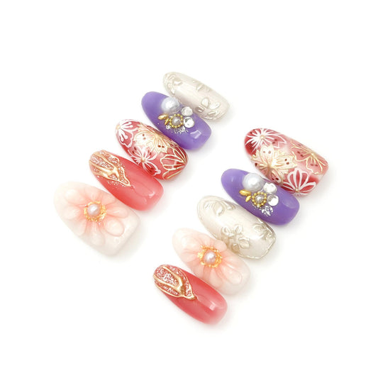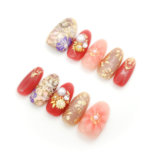【NEW】エレガントネイルチップ 【和カラーの華やかフラワーネイル】