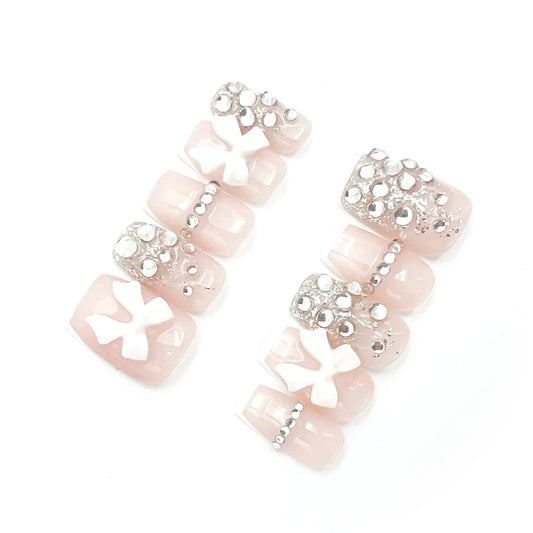 【NEW】エレガントネイルチップ 【煌めきビジューのリボンフレンチネイル】