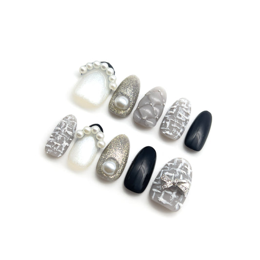 【NEW】エレガントネイルチップ 【モノトーンカラーの大人ツイードネイル】
