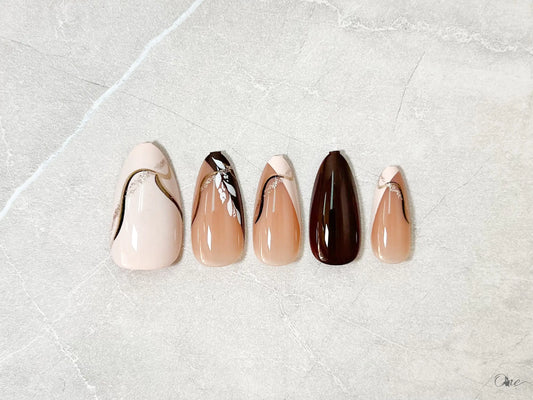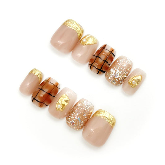 大人ネイルチップ 【ピンクブラウンのゴールドミラーネイル】