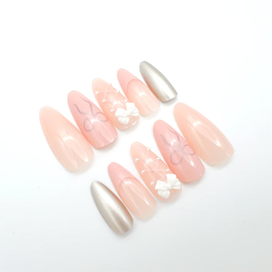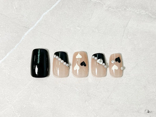 カジュアルネイルチップ【大人かわいいハートパールネイル】
