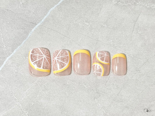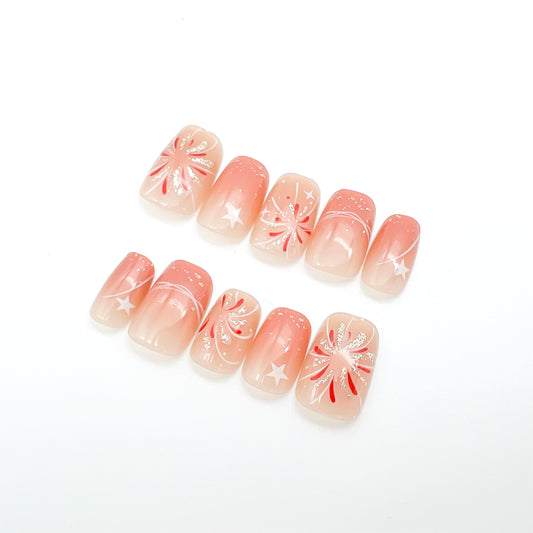 カジュアルネイルチップ【ホワイト×コーラルのフラワーネイル】