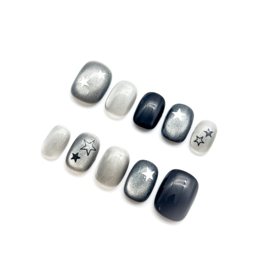 【NEW】カジュアルネイルチップ 【ブラック×シルバーのキラキラスターネイル】