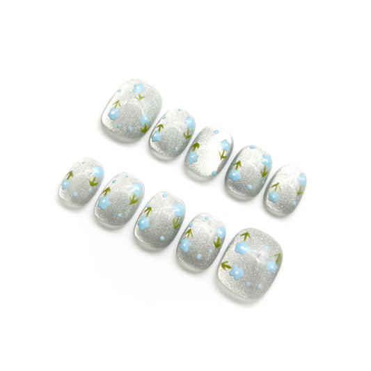 エレガントネイルチップ【シルバー×ブルーのロマンチックネイル】