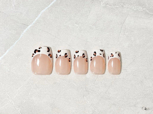 カジュアルネイルチップ【レオパードフレンチネイル】