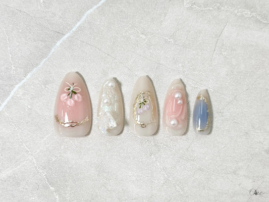 ガーリーネイルチップ【うるうるピンクのプリンセスネイル】