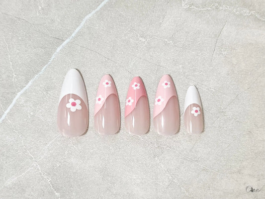 ガーリーネイルチップ【いちごミルクなフラワーフレンチネイル】