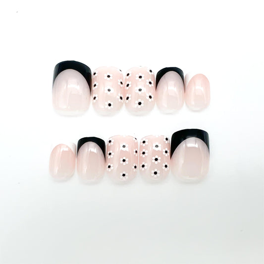 カジュアルネイルチップ【大人カラーのフラワーフレンチネイル】