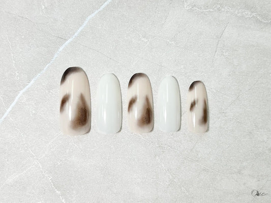 カジュアルネイルチップ【ホワイト×ブラウンのニュアンスネイル】