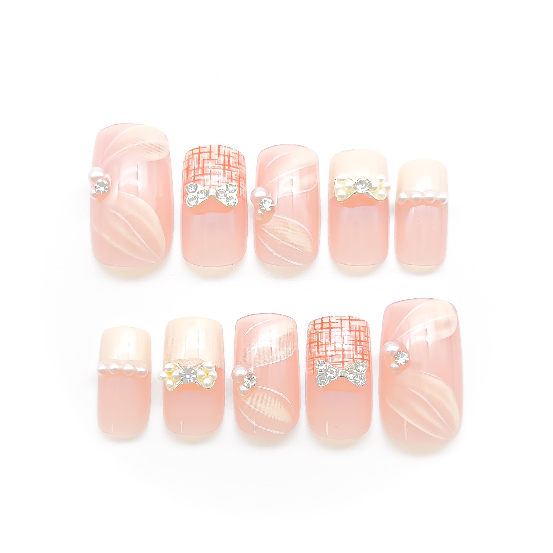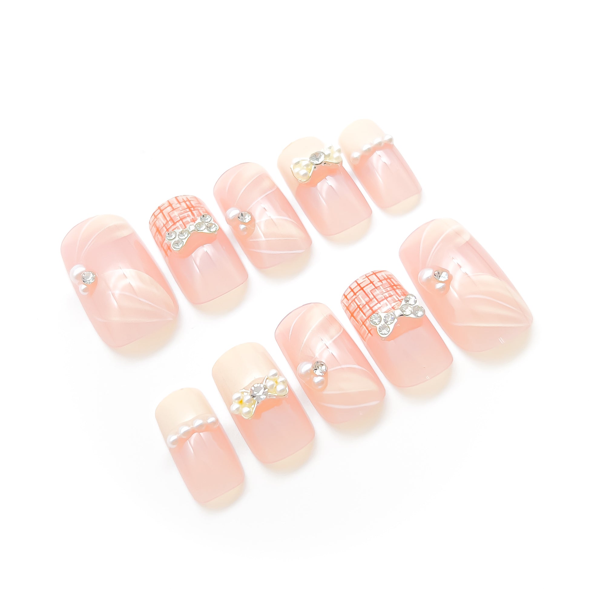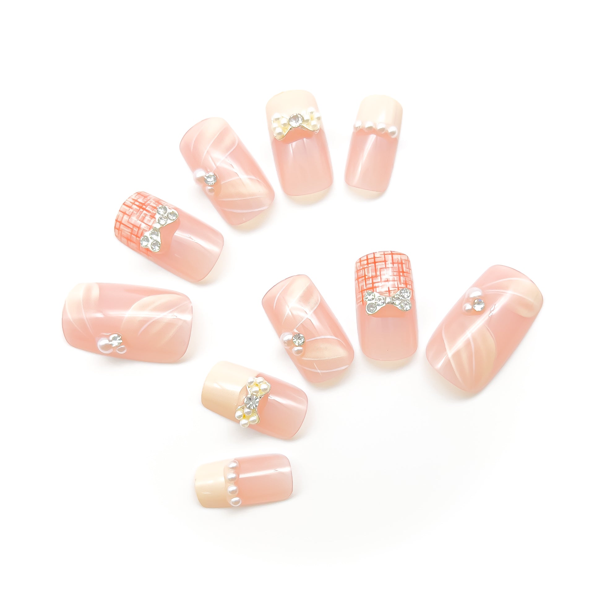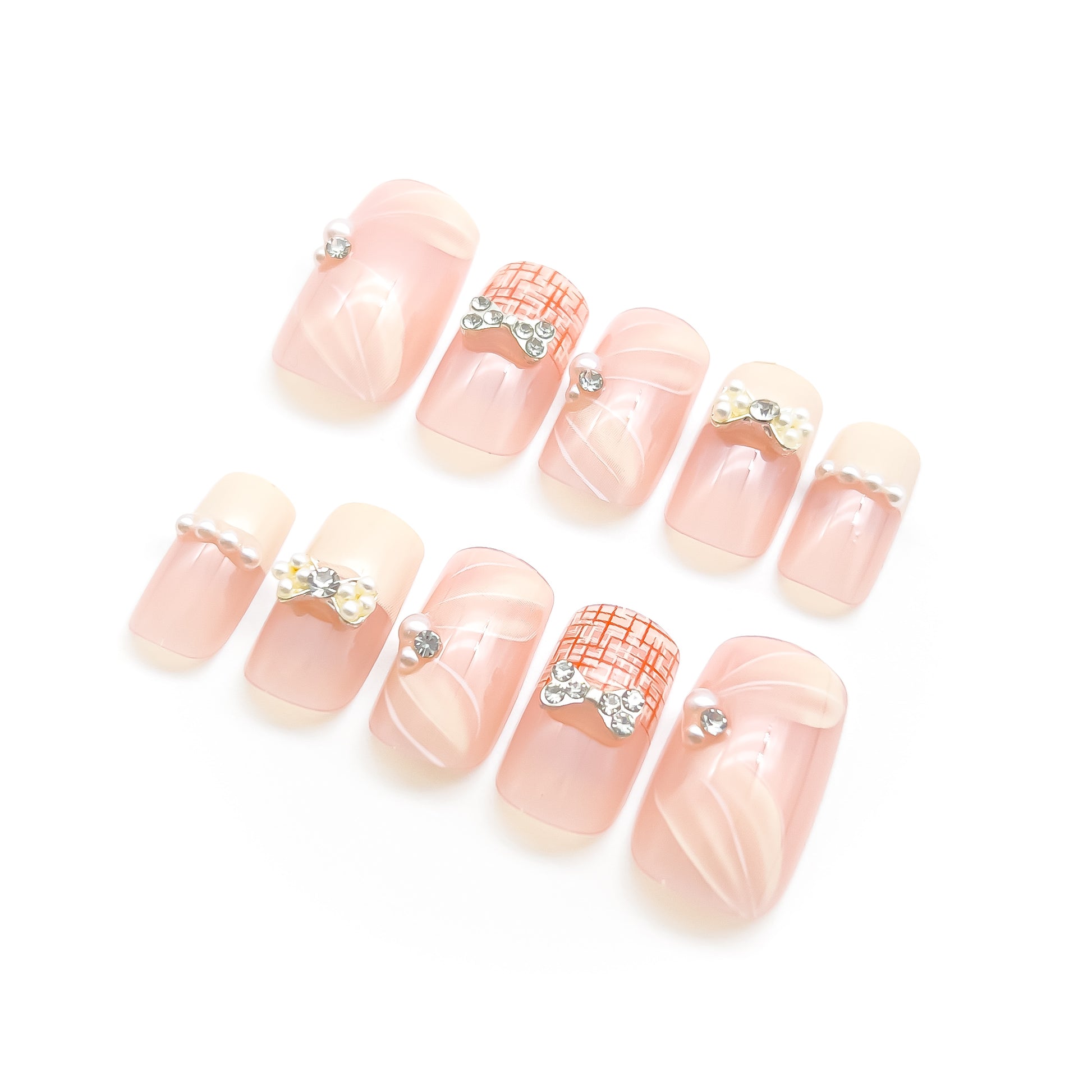 ガーリーネイルチップ【リボン×パールのフェアリーツイードネイル】