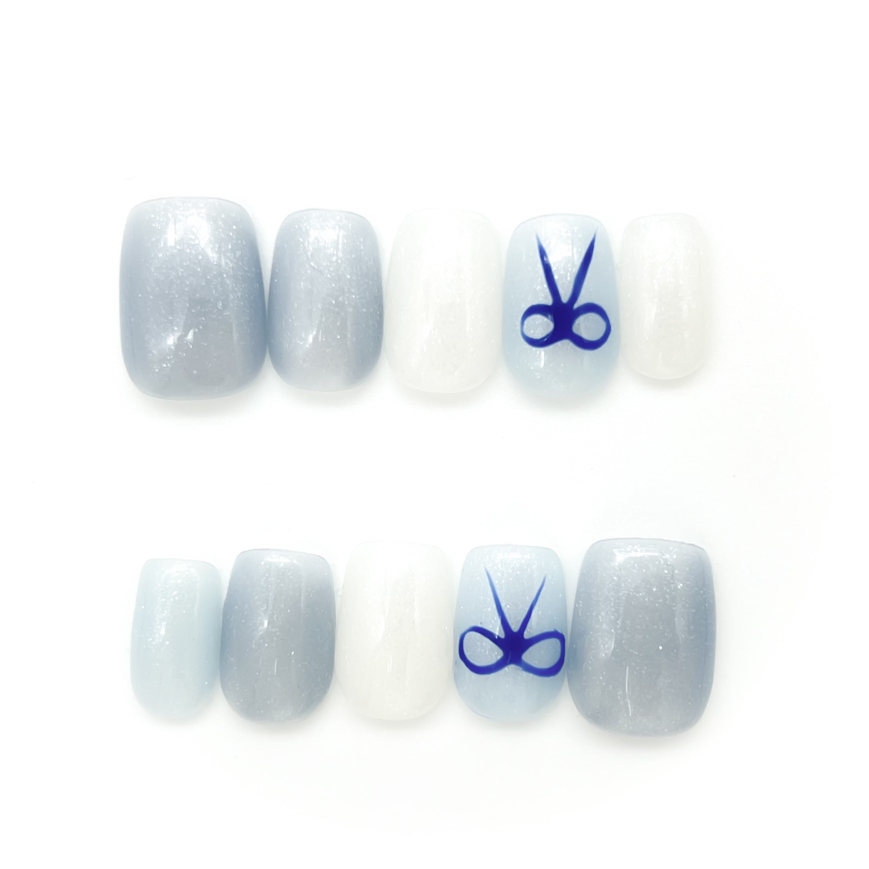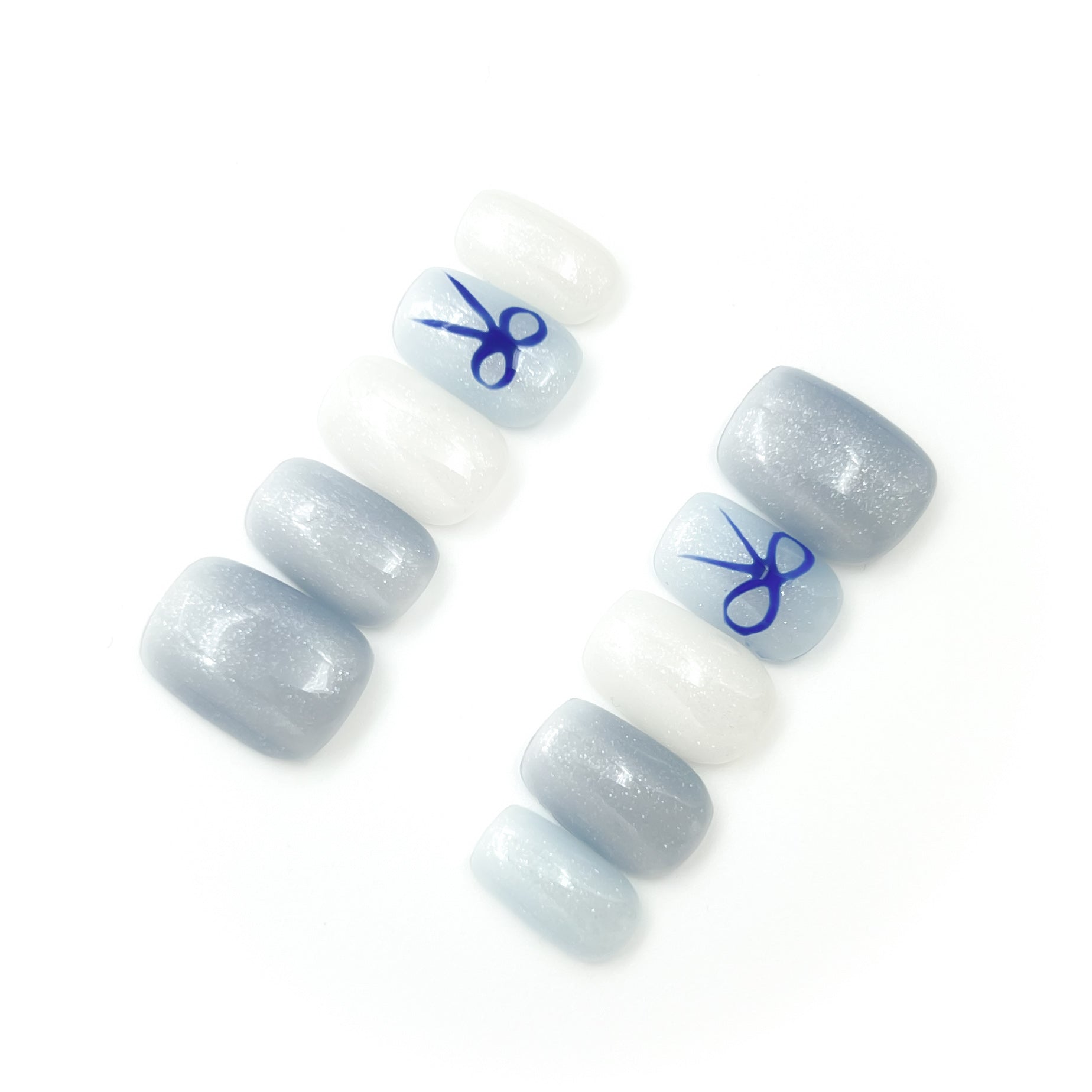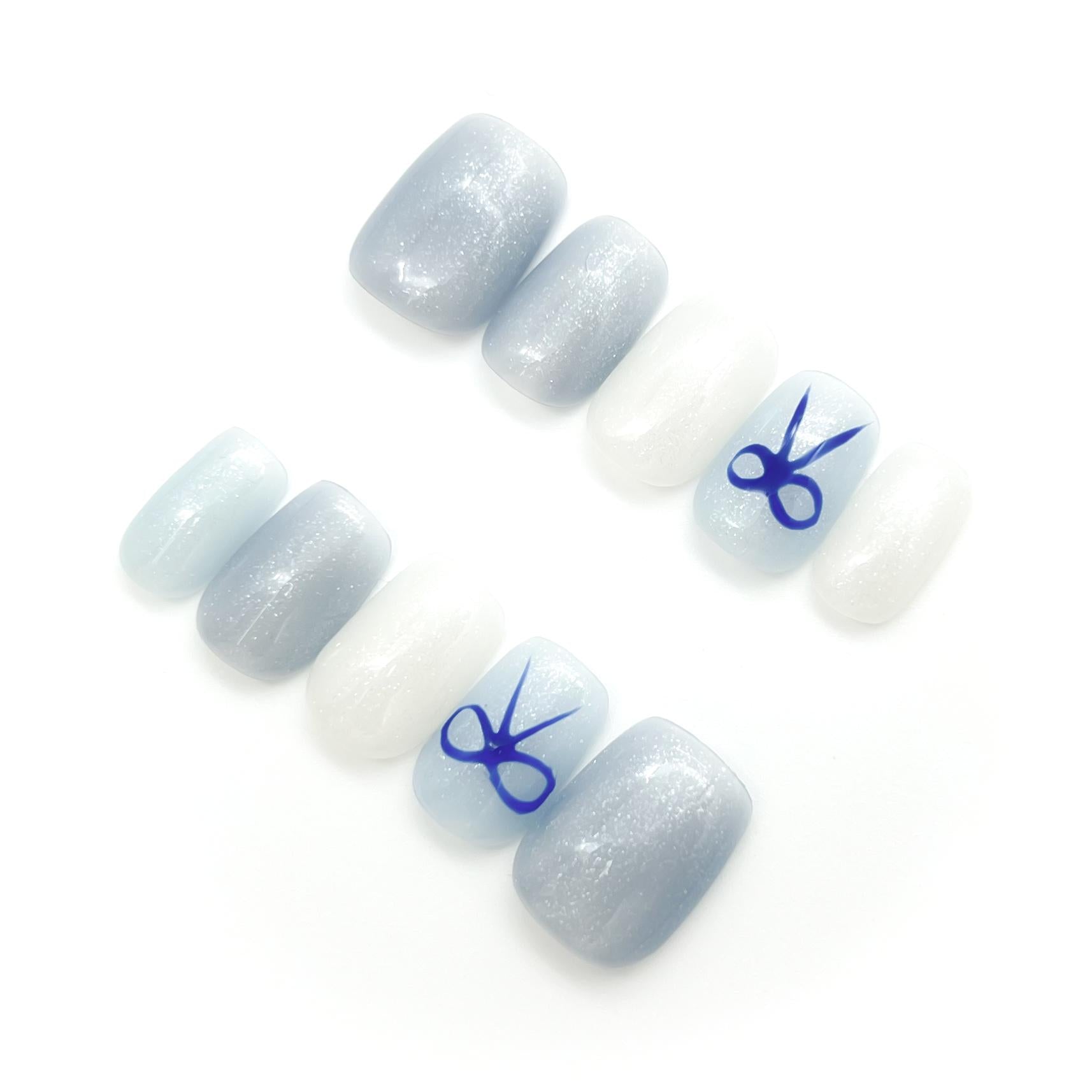 【NEW】ガーリーネイルチップ 【爽やかブルーラメのリボンネイル】