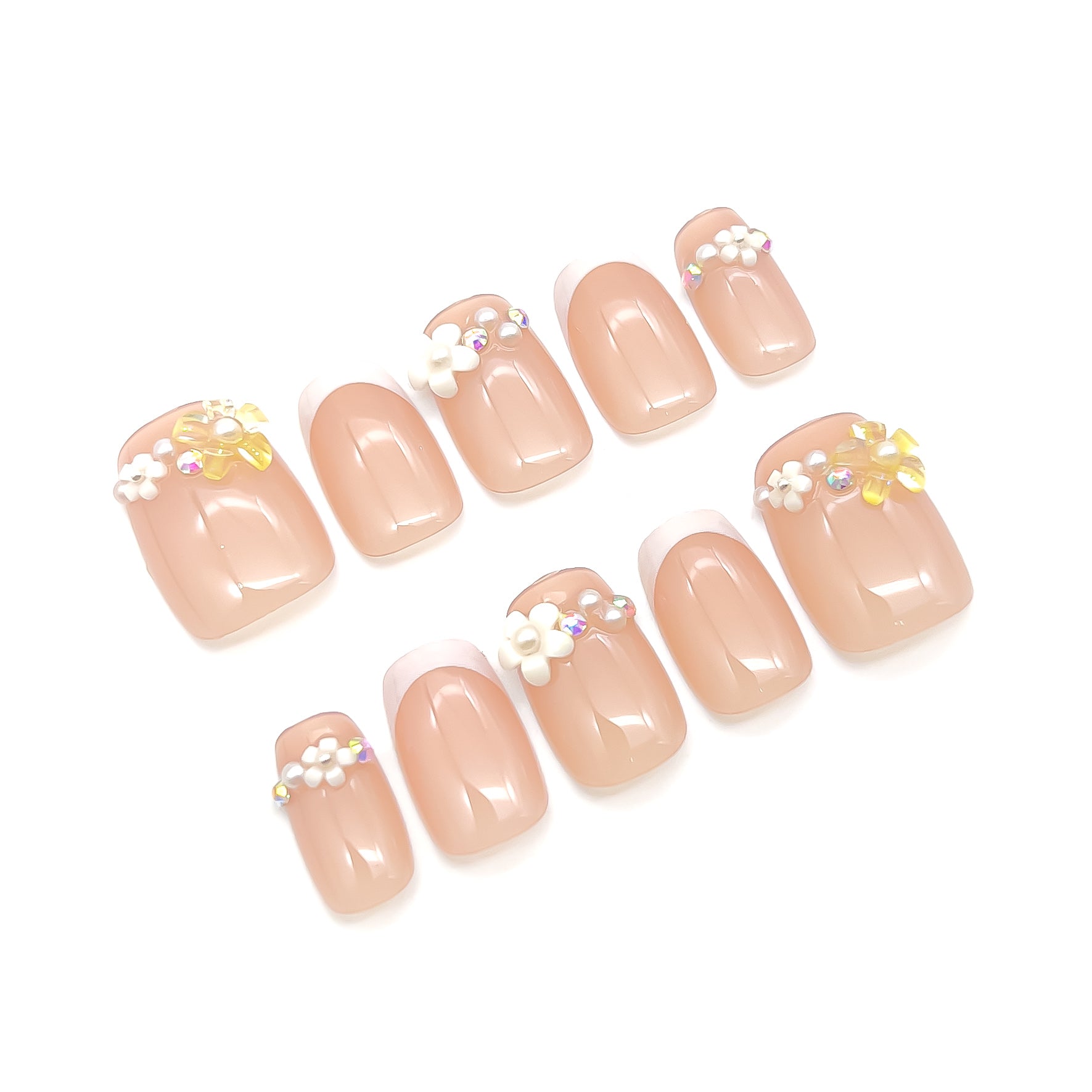 ガーリーネイルチップ【ガーリーなフラワーフレンチネイル】